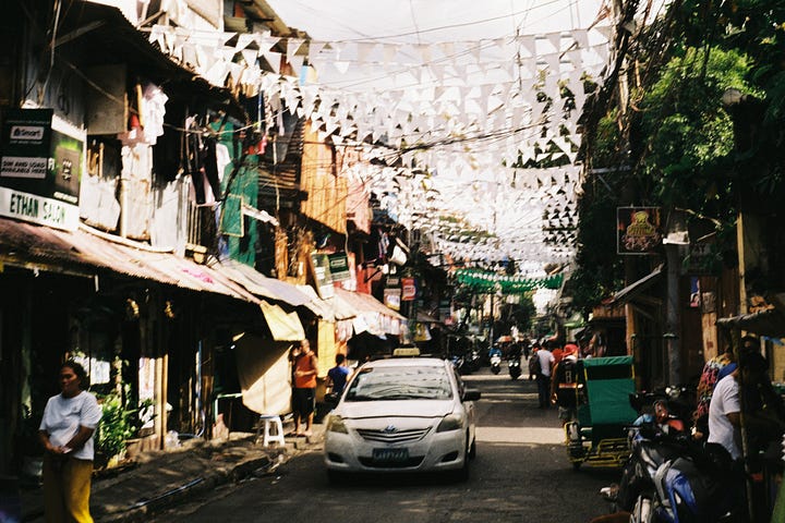 We had planned to spend around three weeks in the Philippines. We spent the first couple of days in Metro Manila, a vibrant and crowded city. On the ride in from the airport, cars and motorbikes swerved around us, squeezing by one another, content to constantly cut each other off. I looked up to find a truck driver shaving his neck with a dry razor. He inched along in the web of traffic, shirtless and with his eyes fixed on the giant side mirror. Inside our taxi, I became keenly aware of how thin the car doors were, separated from the chaotic underpass by only a delicate shell.